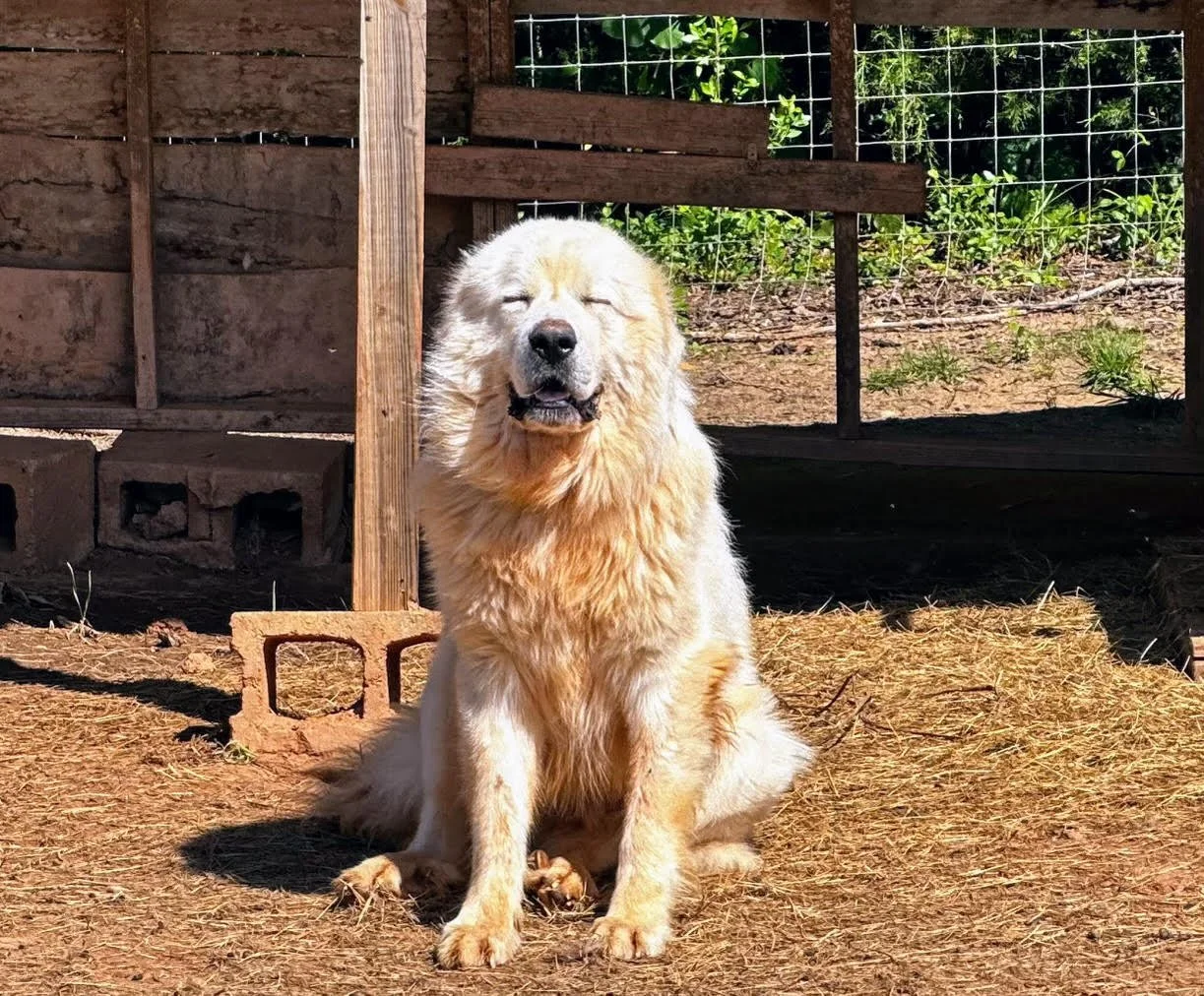 Snow is one of our Great Pyrenees moms who is large, loving, and a great protector. Her impressive size and strength give her a commanding presence, while her loving nature ensures she is gentle and affectionate with her family. She forms deep bonds with her loved ones, often seeking out cuddles and showing a nurturing side, especially with children.