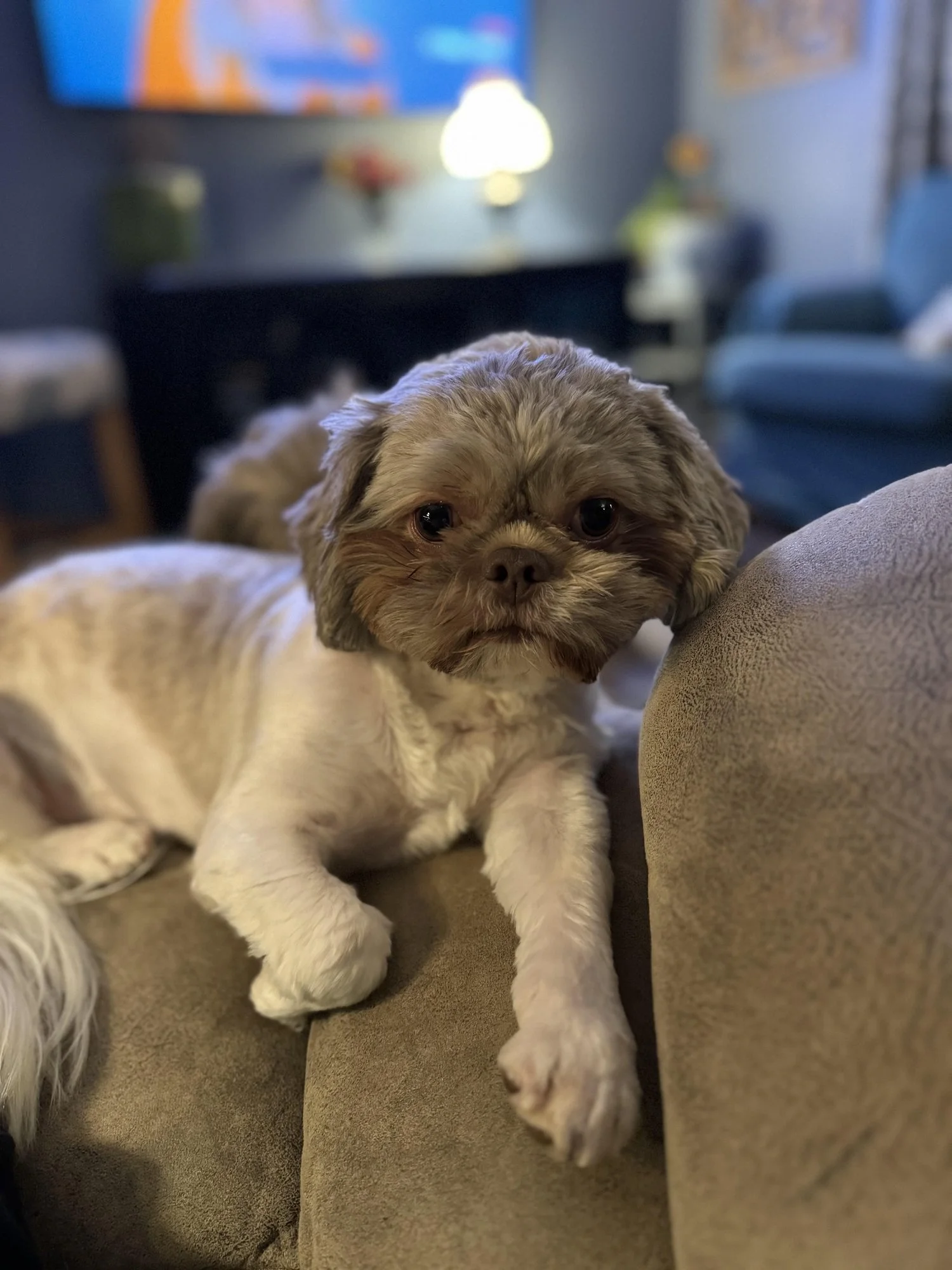 Meet Charleigh. She is another one of our Shih Tzu moms and is sweet and laid back. Charleigh has a gentle and affectionate demeanor. She enjoys cuddling and being close to us.